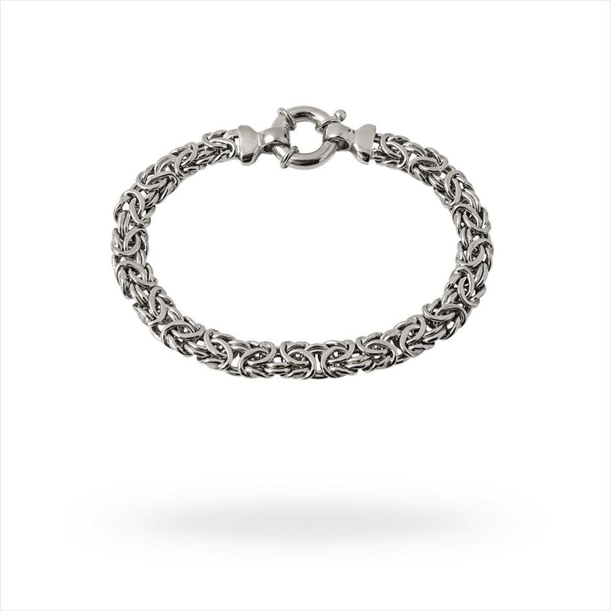 • Silver bracelet formed by a Byzantine chain with a diameter of 8-4 mm. Length 19 cm. Designed amp; Made in Italy. Finished by hand.