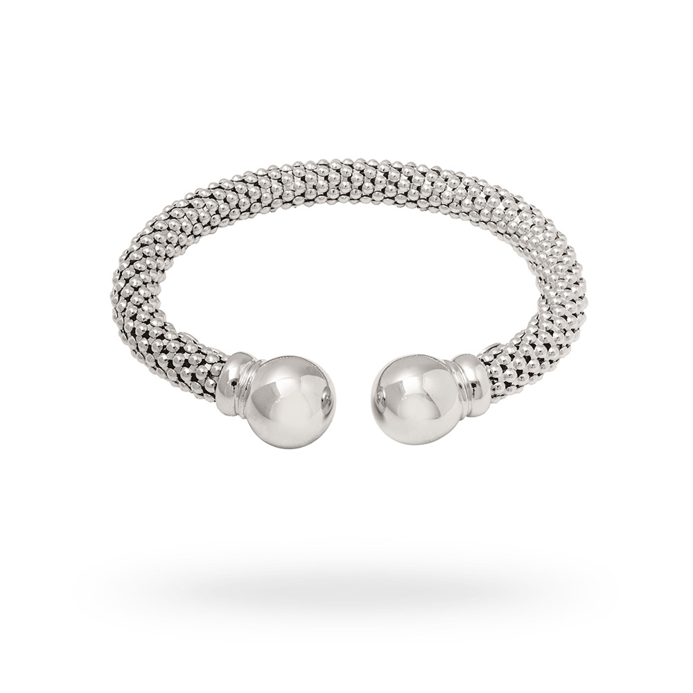 • Silver slave bracelet made up of Korean knitted thread with a diameter of 8 mm. Final boule with a diameter of 14 mm. Designed & Made in Italy. Finished by hand.